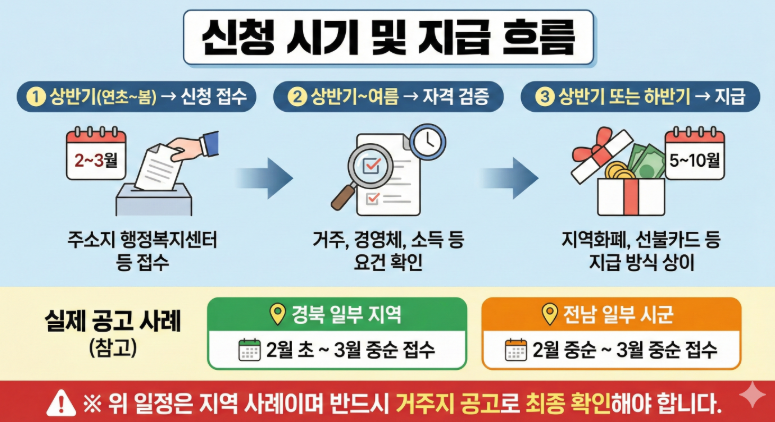 | 전라북도 | 2/1~4/30 | 연 60만 원 이상 | 행정복지센터 |